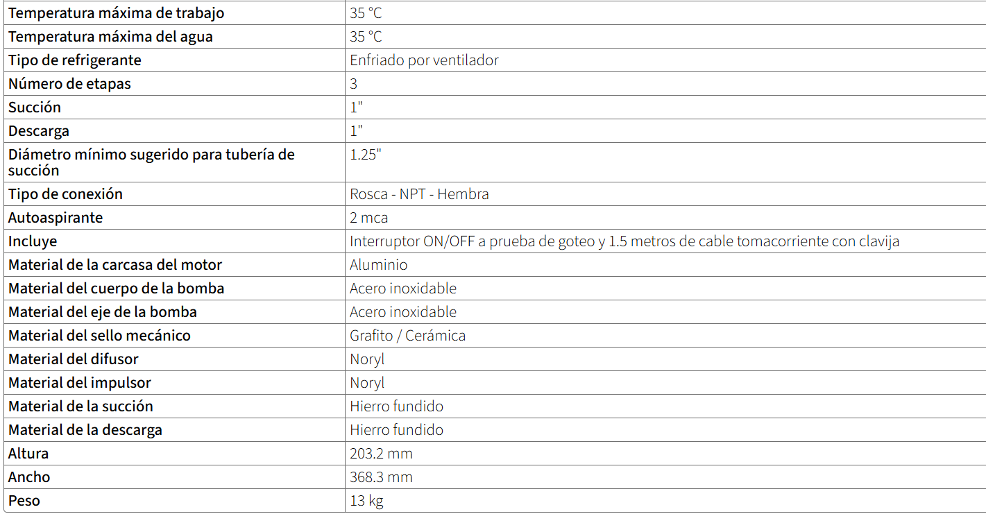 Motobomba multietapas horizontal de superficie para agua limpia 1″